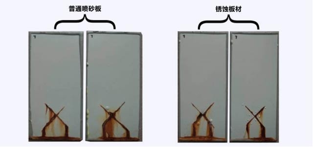 環(huán)氧帶銹防銹涂料耐鹽霧測試:1032小時(shí),對銹蝕板材的防腐保護(hù)能力與經(jīng)過噴砂處理的防腐程度相同。